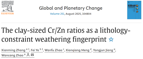 近日,公司赵万苍副教授研究组在地球科学领域top期刊Global and Planetary Change以The clay-sized Cr/Zn ratios as a lithology-constraint weathering fingerprint为题发表最新研究成果。
