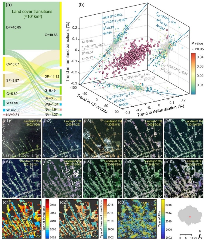 图2. “毁林-农田转换-林火扩张”的协同趋势与演化机制
