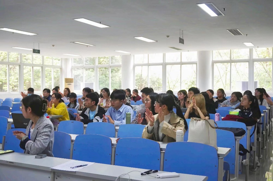 伴随着激昂向上的旋律与掷地有声的誓言,在场的青年团员共同坚定为共产主义事业而奋斗的思想信念。随后主持人向与会人员详细介绍五四红旗团支部评选标准以及分数细则,由参选团支部团支书上台逐一进行展示答辩,而由于教学实践而缺席本次会议的团支部则通过视频直播进行远程展示。