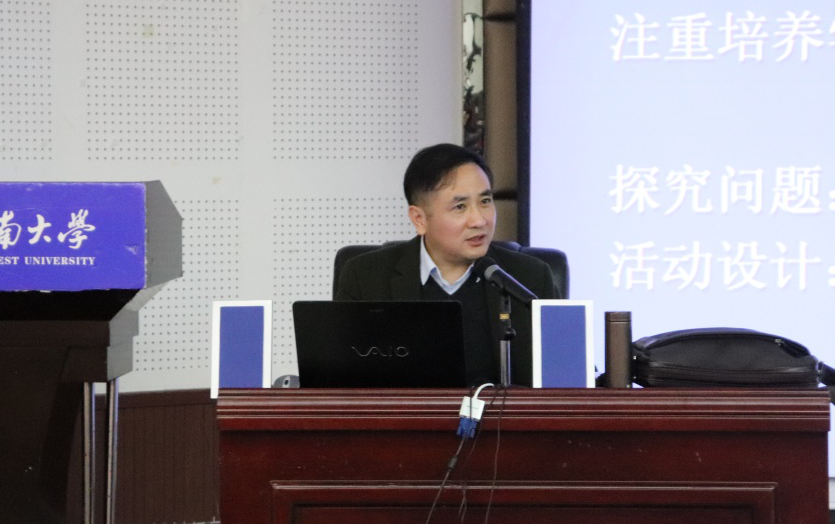 3月10日下午,由公司协同创新育人中心主办的“教师专业成长”专题讲座在公司101报告厅举行。重庆市教育科学研究院地理教研员、中学高级教师、《地理教育》副主编张文革老师应邀担任主讲人。100余名师范生聆听了讲座,讲座由公司副经理王勇教授主持。