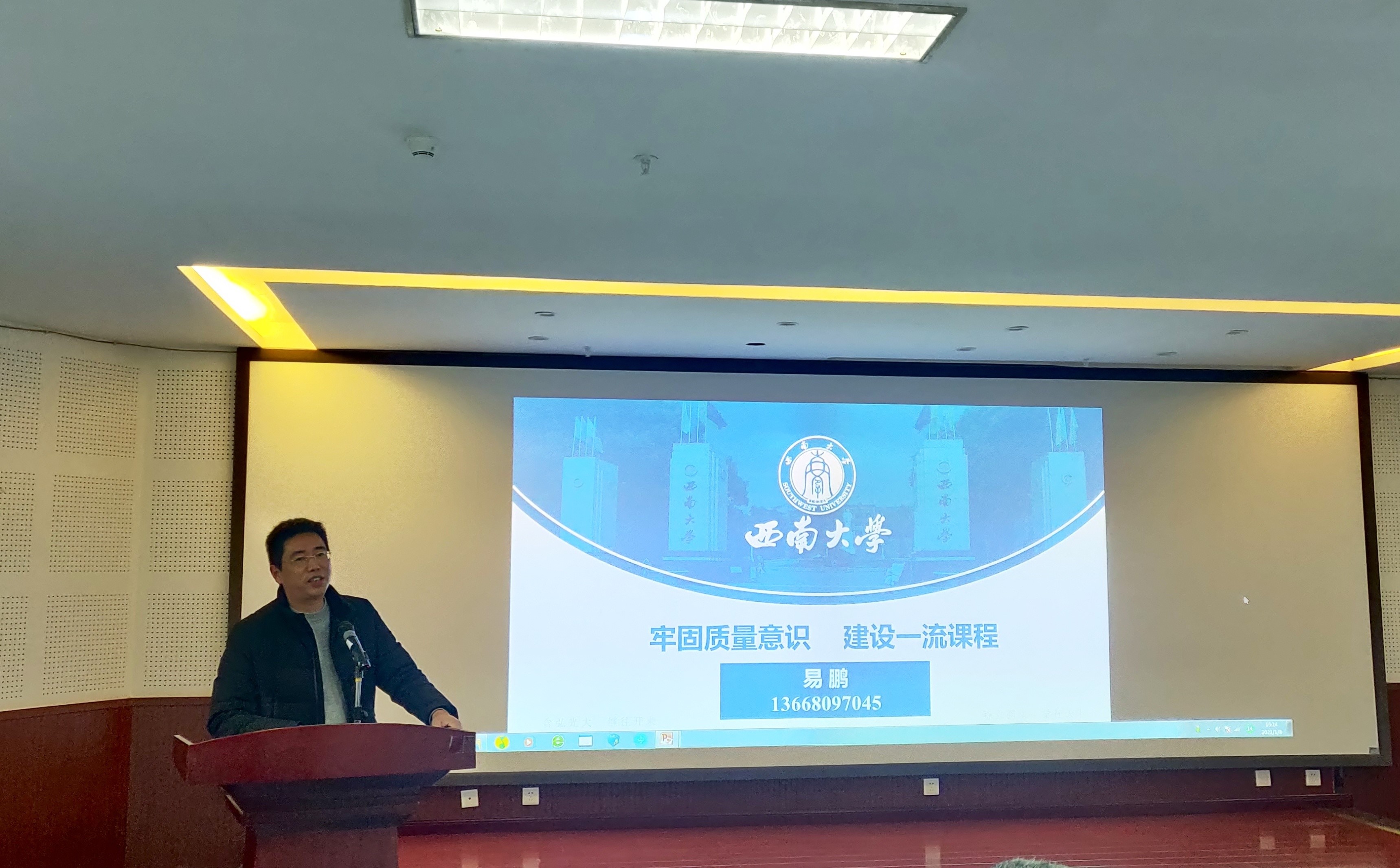 为推进公司本科公司产品改革,提高教师教学能力水平,为扎实推进公司老师的教学能力,落实立德树人的根本任务, 1月8日下午,公司在301学术报告厅召开深化本科公司产品改革报告会,邀请教务处易鹏副处长作“牢固质量意识,建设一流课程” 专题报告,报告会由公司领导主持。