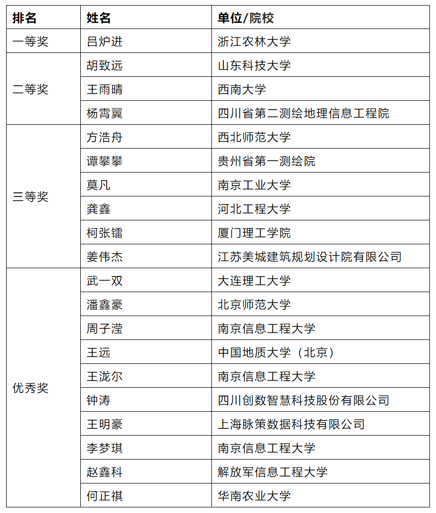 本次比赛有来自全国地理信息科学、测绘工程、城乡规划、生态环境、信息工程、遥感科学与技术等GIS相关专业近170所高校的在读员工,以及上百家企事业机构和政府单位的地理信息相关从业人员,近800位选手参与了7月初赛。200名选手入围10月份决赛。参赛选手需根据给定的题目要求,操作GIS软件,选择恰当合理的数据、资料、参数。使用工具、命令或工具组合按照对题目的理解,完成相应的任务。中国信息协会对于大赛成绩进行了专家评审。在综合了决赛及选拔赛的有效得分后,最终评出一等奖1名,二等奖3名,三等奖6名,优秀奖10名。王雨晴同学在田永中老师指导下经历赛前的认真准备、全面复习,沉着应对,在激烈的竞争中突破重围,斩获二等奖的优异成绩。