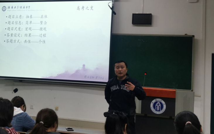 教学工作需要评价,教学质量需要检测,学习效果需要反馈。考试是评价、检测、反馈的主要手段,考试就要有试题,试题就需要命制。因此,要研究试题命制工作,掌握试题命制技术,建立良好的命题机制,才能命制好一份试题。据此,为推进中学一线教师进课堂,提升师范生的基本专业素养,特别是加强公司师范生的地理试题命制能力的培养,为师范生今后走进中学课堂夯实基础,太阳集团tcy8722联合教师教育公司,邀请了西大附中优秀青年教师向颢老师,于10月27日晚上7:20开展了一堂名为“地理题话”的精彩讲座。