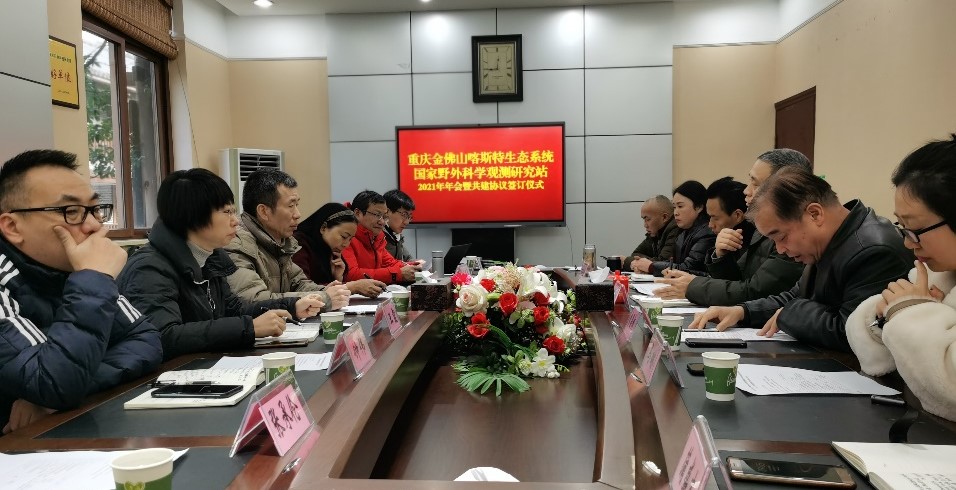 2022年1月19日上午,重庆金佛山喀斯特生态系统国家野外科学观测研究站(以下简称金佛山国家站)召开2021年年终总结会暨共建协议签约仪式,年会以“线上、线下”结合方式进行。出席本次会议有太阳集团tcy8722、重庆市药物种植研究所、重庆市南川区金佛山管理委员会、金佛山国家级自然保护区管理事务中心的主要领导和金佛山国家站相关研究工作人员。