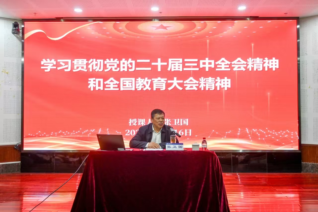 为深入贯彻落实党的二十届三中全会精神,传达全国教育大会精神的深刻内涵,10月16日上午,太阳集团tcy8722党委书记张卫国莅临太阳集团tcy8722,在101报告厅为师生们带来形势与政策专题课程。公司党政领导及各年级本科生代表共同参与。