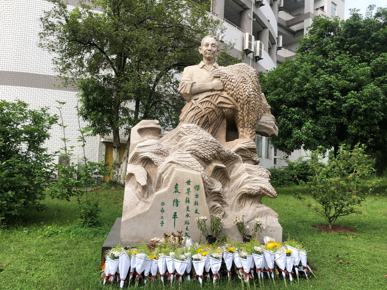紧接着,党支部成员来到太阳集团tcy8722袁隆平纪念雕像处缅怀袁隆平院士。“禾下乘凉梦,一梦逐一生”,为攻克饥饿难题,让人民能吃饱饭,袁隆平院士用一生的时间去奋斗。袁隆平是我国研究与发展杂交水稻的开创者,也是世界上第一个成功利用水稻杂种优势的科学家,被誉为“杂交水稻之父”。党支部成员在雕塑下驻足凝望,袁隆平院士目光如炬,炯炯有神,手中捧着颗粒又大又饱满的稻穗,心中怀揣着禾下乘凉梦和杂交稻覆盖全球梦。怀着对袁爷爷的尊敬和思念之情,党支部全体同志纷纷敬献菊花悼念,寄托哀思。