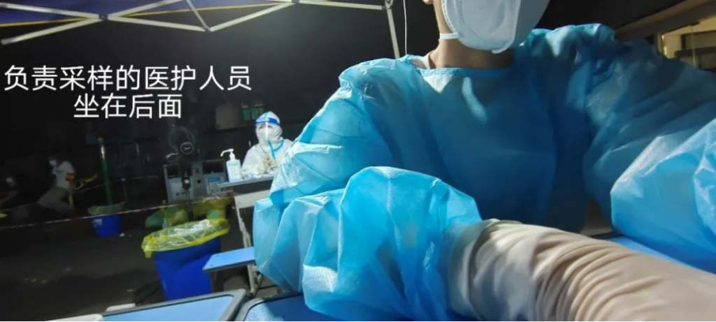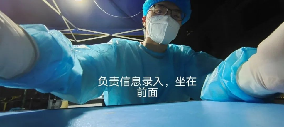 扫开箱码,为检测瓶贴条形码,然后就是不停地扫码,或是扫身份证。坐在那里两个多小时,密不透风的防护服不停累积汗水,最终在手肘弯曲处汇成了一汪“水潭”,难以想象坐在我身后穿着完全密封的“大白”的医护人员是什么感受。第一天完成工作已经一点钟了,因为全身一直湿透地坐在那里,皮肤起了过敏反应,回到家后特别的痒,哪怕使劲挠完还是痒得难受。不过想想能为社区,为合川,为抗疫献出自己的力量,觉得这老员工也就没白当一回。