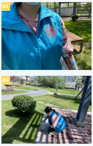 在当天35摄氏度的高温下,我们将违规乱停乱放的共享单车重新摆放整齐,为行人及来往车辆营造出一个安全方便的交通环境。我们还清理路边垃圾,将路边的白色垃圾,烟头等杂物扔进垃圾桶,留下干净的道路。尽管我们只是清理垃圾,打扫绿化,却给市民提供一个干净舒适的环境锻炼,提高个人身体素质,为防疫工作贡献自己的一份力。