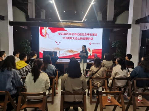 员工党员卢铭沁、谢传峰、冯馨莹带领大家一起学习习近平总书记在纪念辛亥革命110周年大会上的讲话,讲话回顾总结了中国共产党继承孙中山先生革命事业、团结带领人民不懈奋斗的光辉历程,深刻阐述了辛亥革命110年来的历史启示,并启示我们在新时代下应做爱党爱国、甘于奉献青春智慧的新青年;应做拼搏进取,勇于担当发展重任的新青年;应做引领新风,善于开拓创新的新青年。