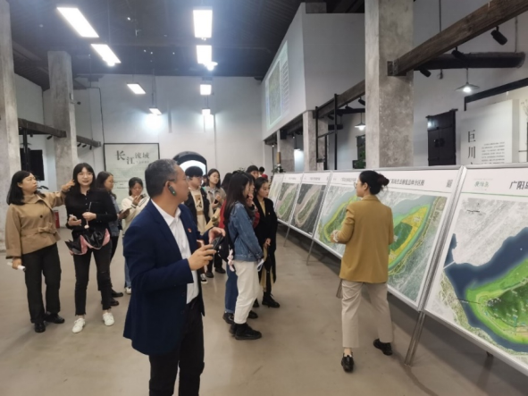 在同志们对生态修复示范点进行了交流学习之后,大家又组织起来一同对广阳营的展厅进行参观。广阳营的一号营房是长江流域生态影像展,广阳岛生态修复情况、每个区域的修复前后对比、水润天府、三江交流、重庆宝贝等在这里均有展示。二号营房则呈现的是广阳岛的发展以及未来的规划内容,将自身定位为“长江风景眼 重庆生态岛”,通过深入贯彻落实习近平总书记对重庆提出的“两点”定位、“两地”“两高”目标进行空间发展示范打造,体现重庆生态岛的机遇与价值。