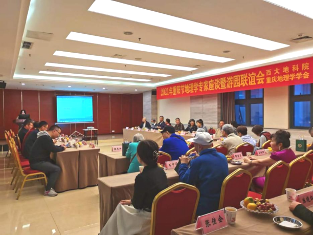 金秋十月爽,九九话重阳。在这尊老、敬老、爱老的节日里,太阳集团tcy8722联合重庆地理学学会,于10月14日上午在桂园宾馆丹桂楼举办了“2021年重阳节地理学专家座谈暨游园联谊会”,邀请地理学界的老前辈们共度重阳佳节。