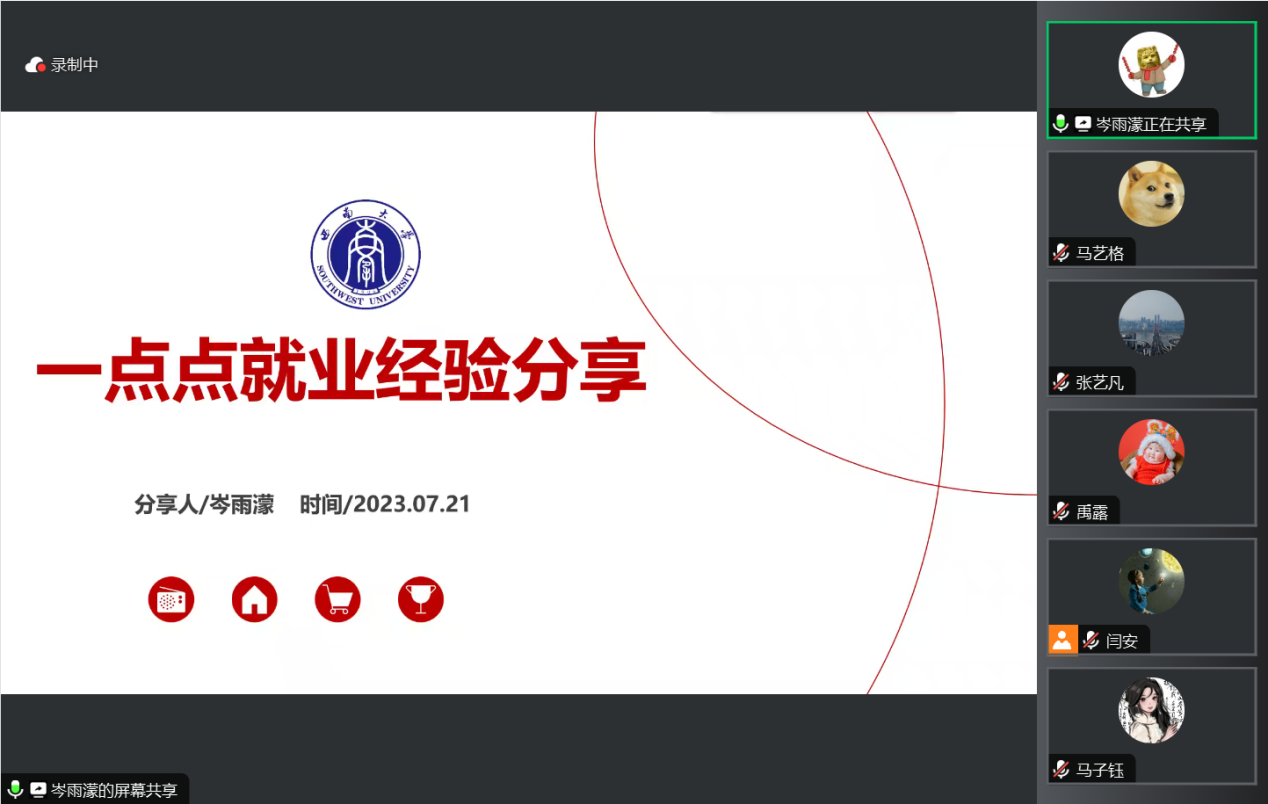 随后,来自2019级的四位优秀师范生党员为参会的低年级同学分享了求职经验。张艺璐从招聘信息获取、应聘流程一览、签约注意事项三个方面进行介绍,她谈到简历的投递要突出自身个性,不应在内容上贪多;郭锐着重提出要做好就业规划,强调就业选择前的信息检索能力,并且分享了他的个人说课经验;马子钰谈到要做好专业知识积累、片段课训练与高考题练习等一系列准备,强调就业要放平心态;岑雨濛则分享了她在重庆本地的求职经验,并详细分析了部分公司的招聘条件。